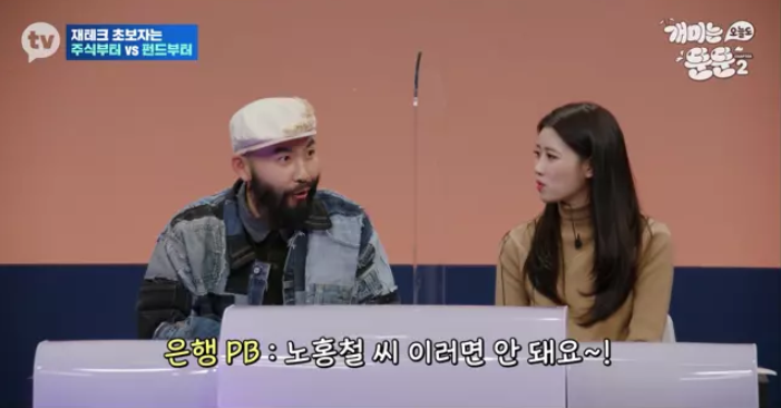 닥터 노라는 이름으로 길바닥 MC부터 해온 노홍철은 방송계에선 독보적인 캐릭터로 인기가 있었지만 유독 투자와 주식에 관련해서는 인연이 없어 보입니다. 무한도전에서 정준하에게 주식 정보를 듣고 큰돈을 투자했다가 몽땅 잃은 사건은 개그 소재로도 종종 쓰였는데요. 노홍철은 22년 동안 거래를 해온 은행의 한 PB (Private Banker)를 만나게 됩니다.