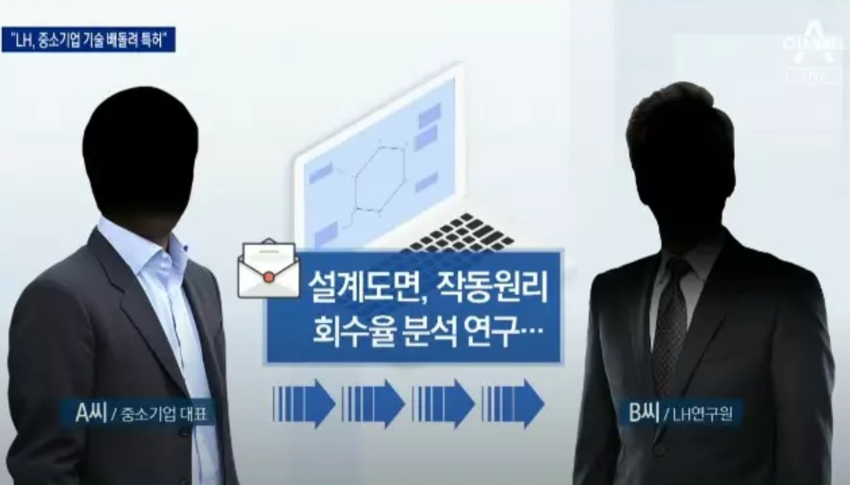 중소 벤처기업부는 LH 연구원 B 씨가 A 씨의 연구 제공 자료를 자신이 직접 연구한 자료인 것처럼 학술지에 게재를 했다며 문제를 지적했습니다. 하지만 LH 측은 연구원 B 씨의 윤리적인 문제를 인정하면서도 기술에 대한 특허 절차는 적법하게 진행되었다는 입장을 내놓았습니다.