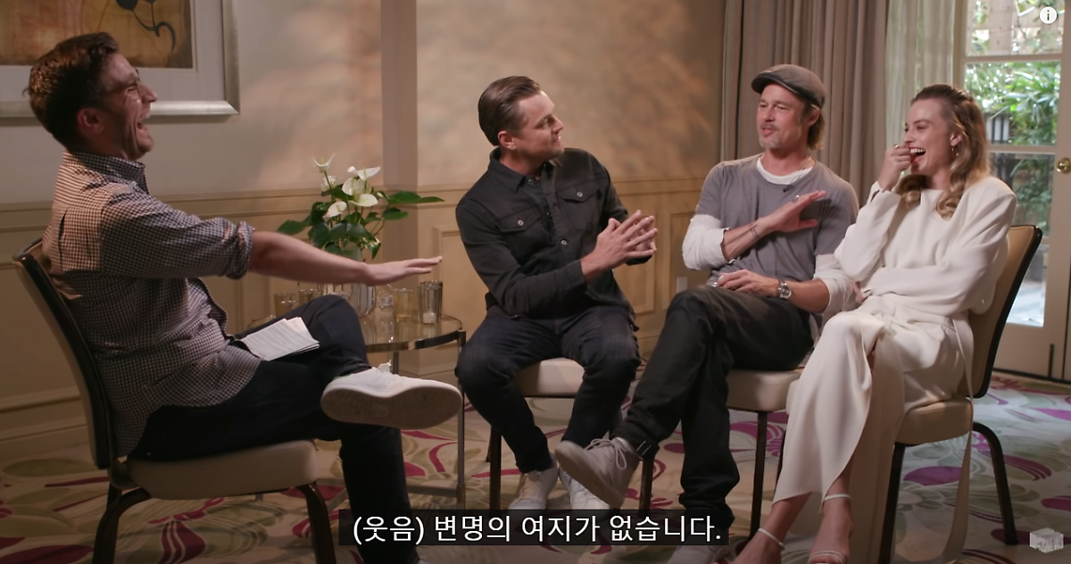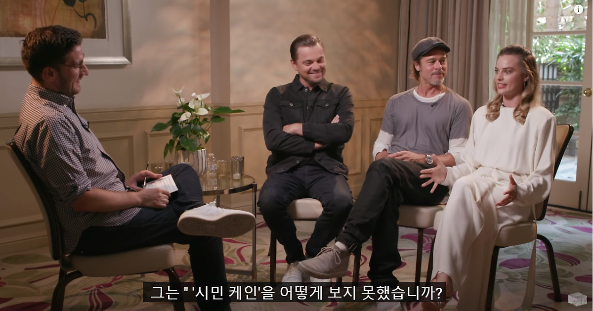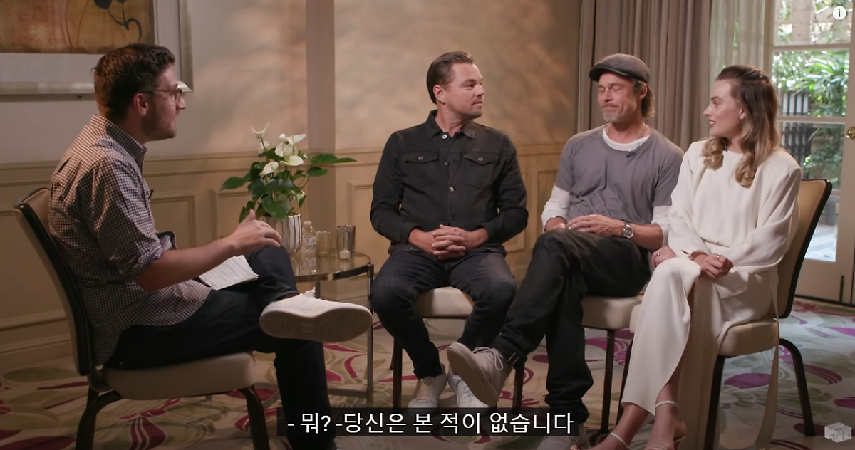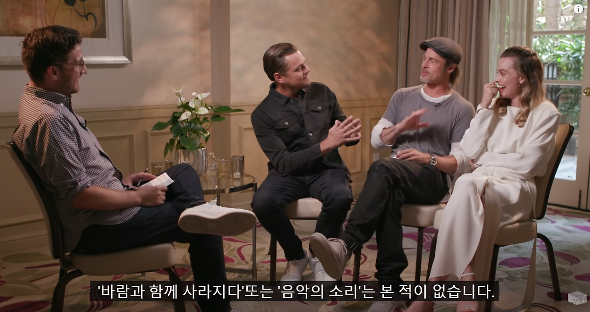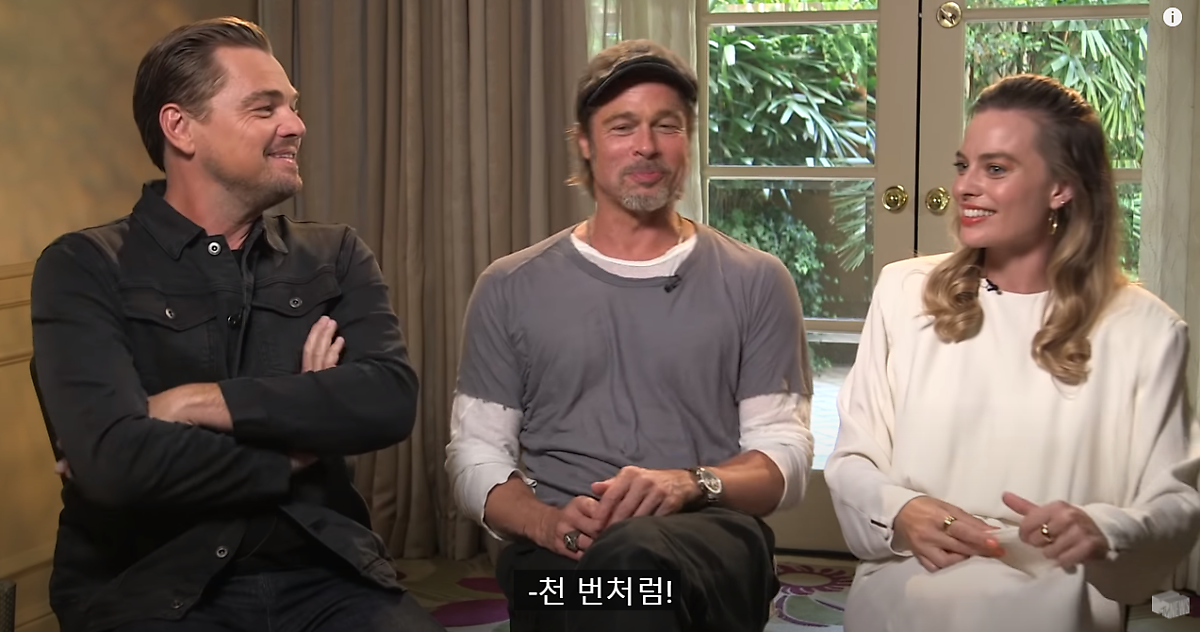 해당 인터뷰는 쿠엔틴 타란티노 감독의 영화 <원스 어폰어 타임>의 인터뷰입니다. 해당 영화는 개봉전부터 레오나르도 디카프리오와 브래드 피트의 만남 또 한 할리우드 대표 섹시 여배우 마고로비의 등장으로 화제가 됐었는데요.
