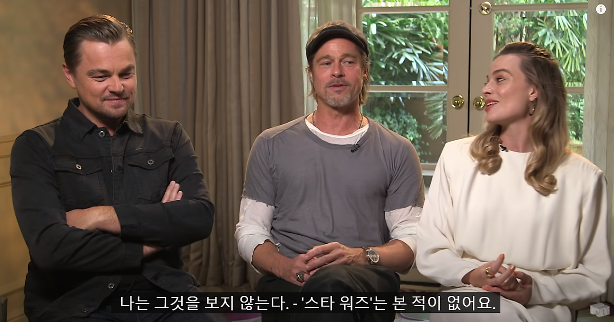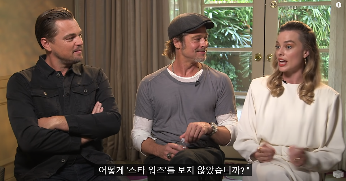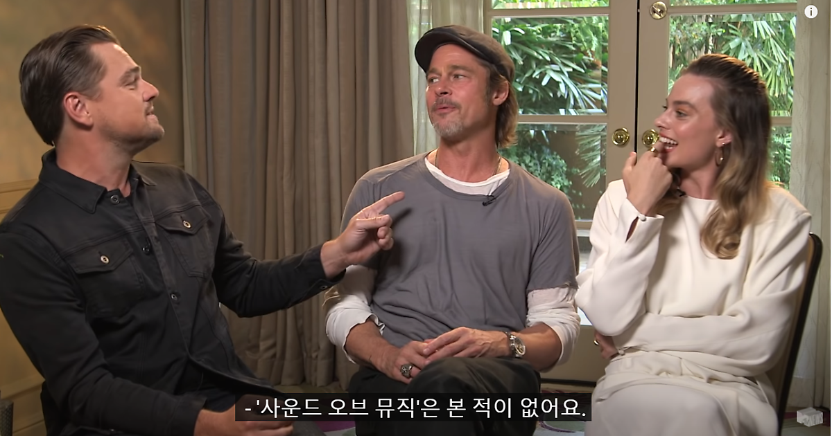 이어서 브래드피트는 영화 <사운드 오브 뮤직> 도 안 봤다고 고백했는데요. 그러자 갑자기 레오가 수줍게 브래드 피트의 어깨를 잡더니 자기도 <사운드 오브 뮤직>은 본적이 없다고 고백했는데요. 그러자 마고로비가 진심으로 깜짝 놀라 "정말 사운드 오브 뮤직을 안 봤어?" 라고 물어봅니다. 이에 브래드 피트가 "너는 봤냐?" 라고 물어보자 마고로비는 천 번정도 봤다고 대답을 했습니다.