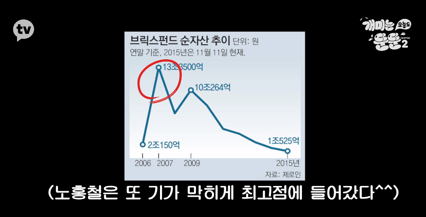노홍철은 PB의 권유에 따라 브릭스 자산에 자신의 돈을 투자하기 시작했습니다. 호언장담했던 PB의 말처럼 노홍철은 자신의 돈이 불어나길 바랐을 텐데요. 안타깝게도 노홍철이 들어간 브릭스의 시점은 최고점에 들어가게 되었습니다. 자연스럽게 노홍철이 투자한 돈은 서서히 내려가게 되었습니다.