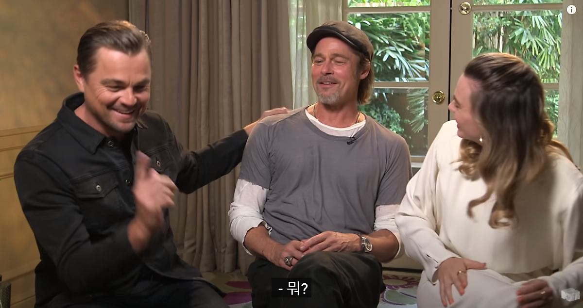 이어서 브래드피트는 영화 <사운드 오브 뮤직> 도 안 봤다고 고백했는데요. 그러자 갑자기 레오가 수줍게 브래드 피트의 어깨를 잡더니 자기도 <사운드 오브 뮤직>은 본적이 없다고 고백했는데요. 그러자 마고로비가 진심으로 깜짝 놀라 "정말 사운드 오브 뮤직을 안 봤어?" 라고 물어봅니다. 이에 브래드 피트가 "너는 봤냐?" 라고 물어보자 마고로비는 천 번정도 봤다고 대답을 했습니다.