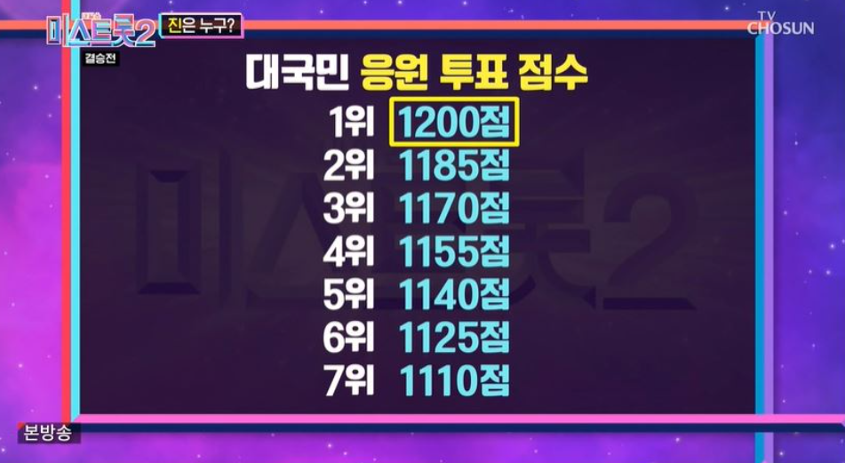 지난 결승 1라운드에서 실시간 문자투표로 인해 TOP7의 순위가 뒤바뀌는 반전이 일어나면서, 결승 2라운드에서도 순위를 가늠할 수 없는 예측불허 승부가 예견되고 있는 상황이 펼쳐지고 있습니다. 이렇게 실시간 문자투표 점수가 최대 변수로 떠오르면서 TOP7이 마지막까지 시청자들의 뜨거운 응원과 지지를 부탁하고 나선 것이 되었는데요.