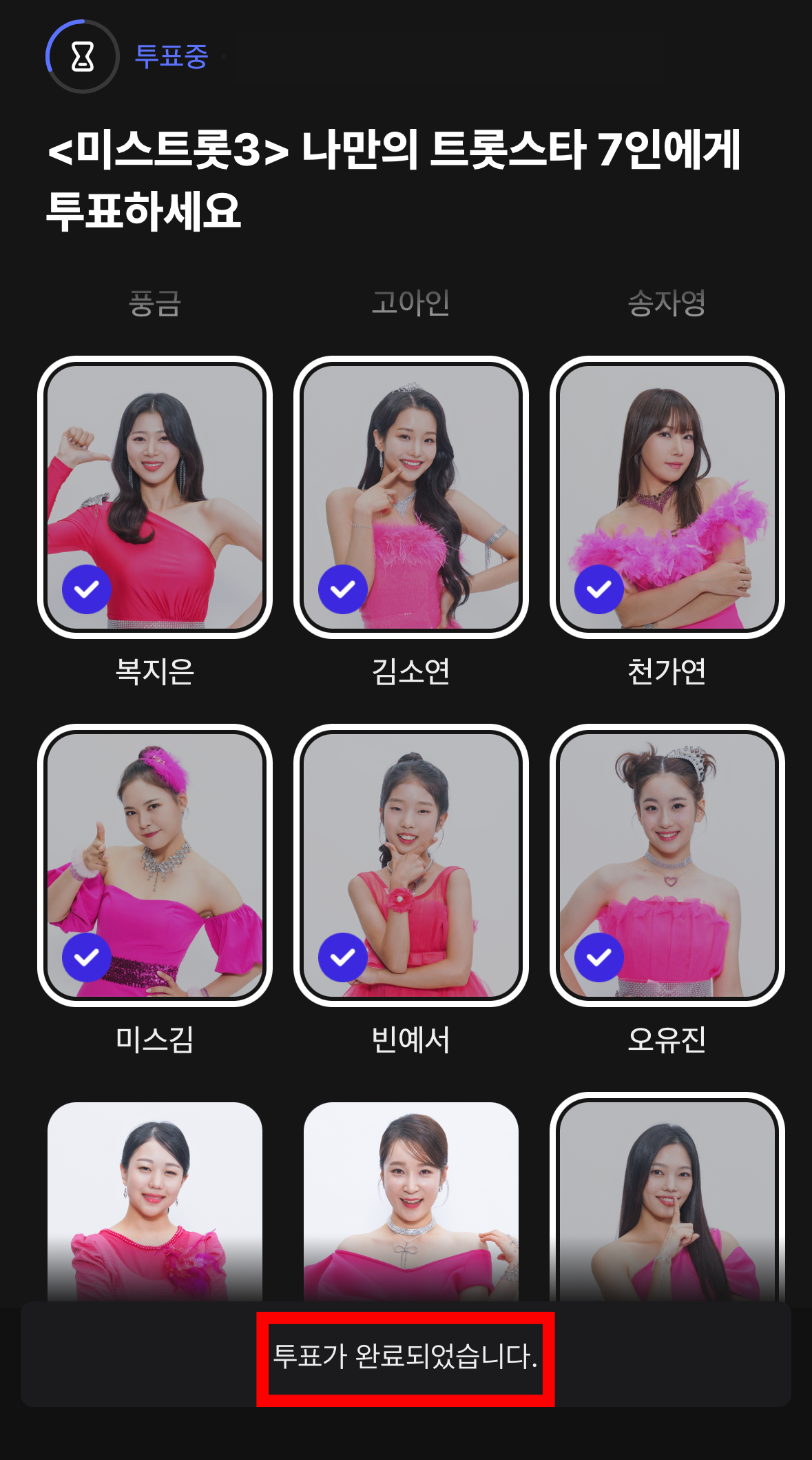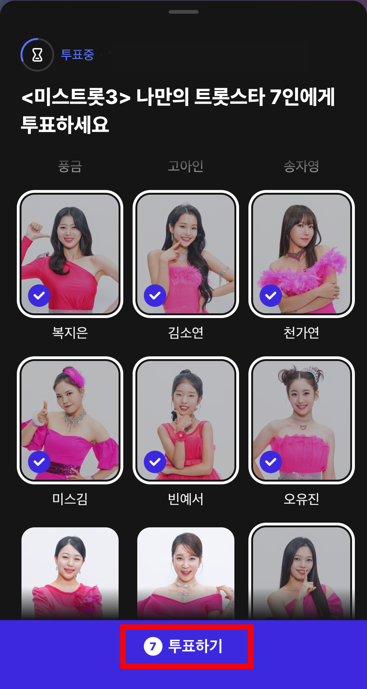 5. 내가 응원하는 트롯스타 7명을 선택