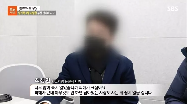 사고 차량 운전자의 딸은 "차가 왜 이렇께 떨려요?" 라며 걱정스러운 말투로 물어봤고 해당 차량은 2001년식이지만 이 차는 10만km도 타지 않은 차량이라고 운전자는 말했습니다. 이후 다시 차는 출발을 했고 10분 후 브레이크가 먹지 않고 급가속을해 끔찍한 사고를 당하게 되었습니다.