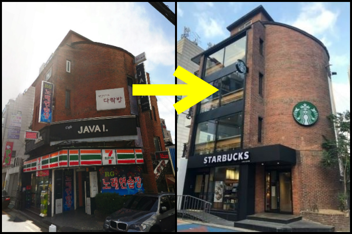 박명수 한수민 부부가 2011년 매매한 서울 성북구 성신여대 근처의 건물은 매입전에는 1층에는 세븐일레븐 편의점, 2층에는 카페, 지하에는 노래연습장 등이 있는 일반적인 건물이었습니다. 하지만 박명수 한수민 부부는 건물 매매전부터 스타벅스 입점 여부를 검토하였고, 계약을 하자마자 바로 스타벅스로 리모델링을 하였는데요.