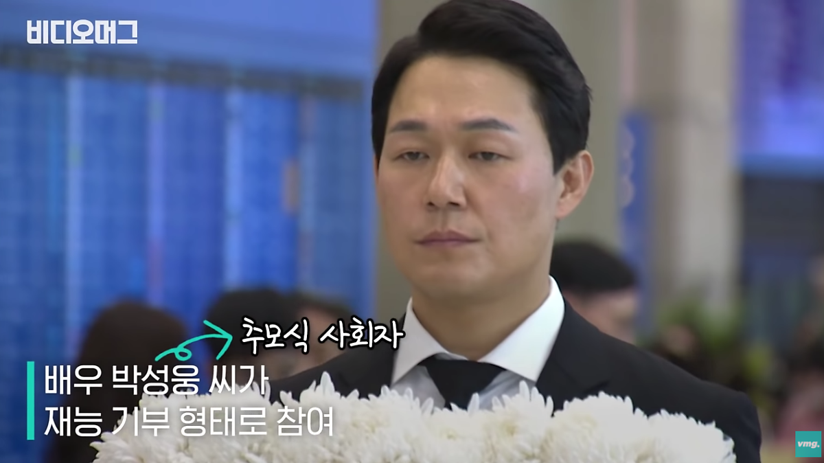 바로 <신세계> 에 이중구 역할로 출연해 강렬한 인상을 남긴 배우 박성웅씨였습니다. 박성웅씨는 재능기부 형태로 추모자 사회자를 맡은 것 뿐만 아니라, 유족이 없는 조상님들을 위해 직접 상주까지 자처했다고 하는데요. 진지한 표정으로 운구 행렬을 하며 조상님들을 위해 마음을 쓰는 모습은 많은 국민들에게 감동을 전해 주었습니다.