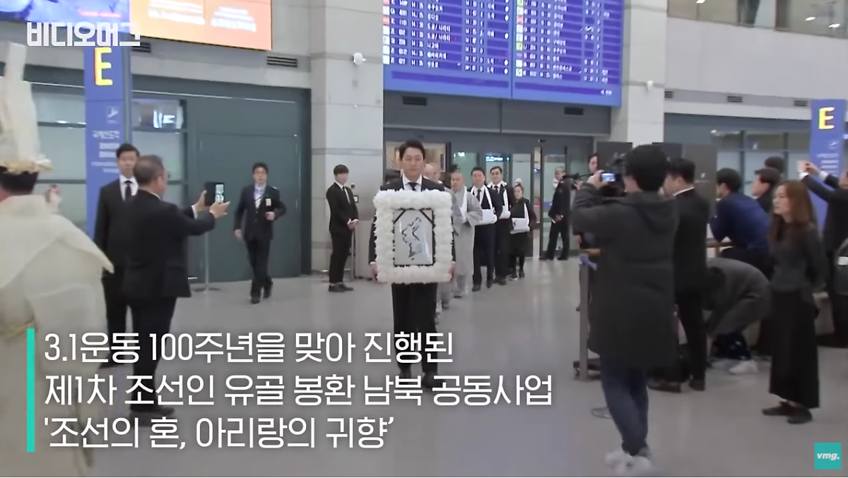 세월이 흘러 3.1운동 100주년을 맞아 처음으로 강제징용으로 끌려가서 고국으로 돌아오지 못 한 조상님들의 유골을 가져오는 남과북의 공동사업인 '조선의 혼, 아리랑의 귀향' 이라는 프로젝트를 진행하게 되었는는데요. 죽어서까지 타국에 묻혀 있는 쓸쓸한 조상들의 유골을 후손들이 가져오는 것입니다.