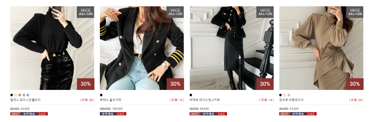 줄로그는 상품을 구해오는 것 뿐만 아니라, 줄로그 자체에서 상품을 만들기도 하는데요. 힐과 트렌치코트, 가디건, 니트, 반팔티, 자켓 등 직접 메이드를 하기도 하니 옷에 대해 신경을 많이 쓰는 브랜드인 것 같습니다. 또 한 배우 김성령이 모델로 활동하고 있으니 더욱 신뢰가 가는 브랜드인데요.