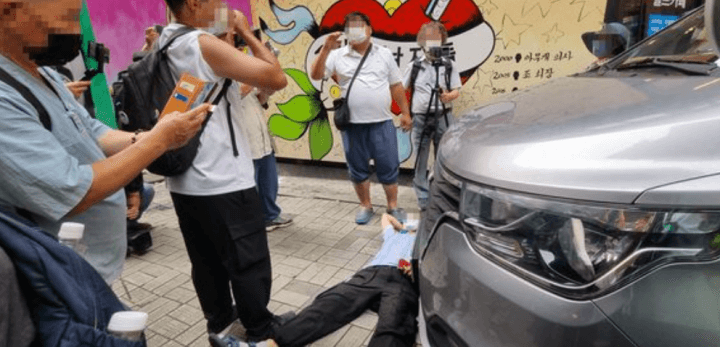 보수세력이 이와 같이 행동하자 진보세력과 현장에서 시비가 붙기도 했습니다. '그림이 다시 보이게 차를 치워라', '낙서를 지워라', '지우지 마라' 등 벽화 앞에서 약 30명 가까이 되는 사람들이 언쟁을 벌였으며 어떤 사람은 벽화 앞에 놓인 차가 못 지나가게 드러눕기까지 했습니다.