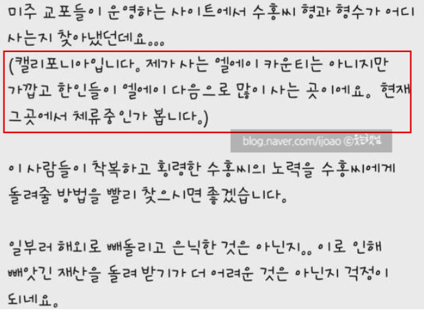 현재 논란이 되고 있는 박수홍의 형인 박진홍은 미국의 캘리포니아에 거주중인 것으로 추측되고 있습니다. 한인들이 많이 모여있는 지역이 있는 것으로 보여집니다. 미국에 있는 한인 거주자들이 박진홍을 여기서 본 것 같다는 게시글이 올라오고 있는데요. 아직 박진홍 측에서 공식입장을 내놓지는 않은 상황입니다.