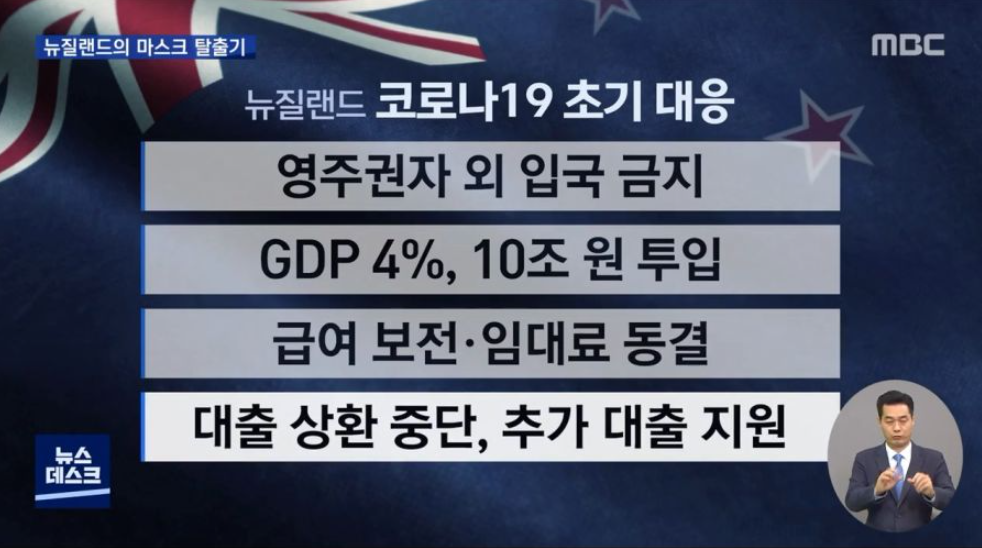 먼저 뉴질랜드의 영주권자 외 입국금지, GDP 4% 10조 원 투입, 급여 보전 및 건물의 임대료 동결, 대출 상황 준단, 추가 대출 지원 등 국민들이 생계를 걱정하여 돈을 벌기 위해 외출을 하지 않도록 지원을 해줬는데요. 급여 보전과 임대료 동결이 상당히 눈에 띄는 부분입니다. 또 한 국민들을 위해 추가 대출 지원도 했는데요.